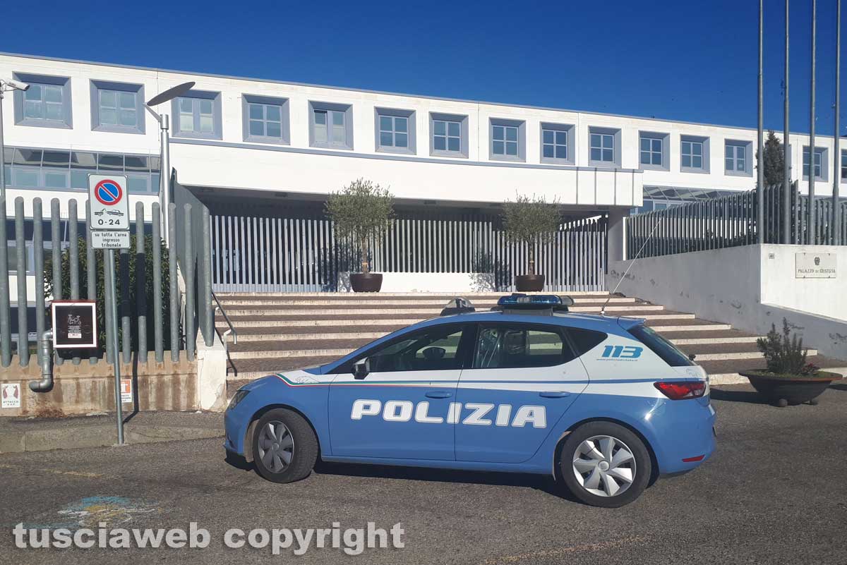 Un’auto della polizia di fronte al tribunale