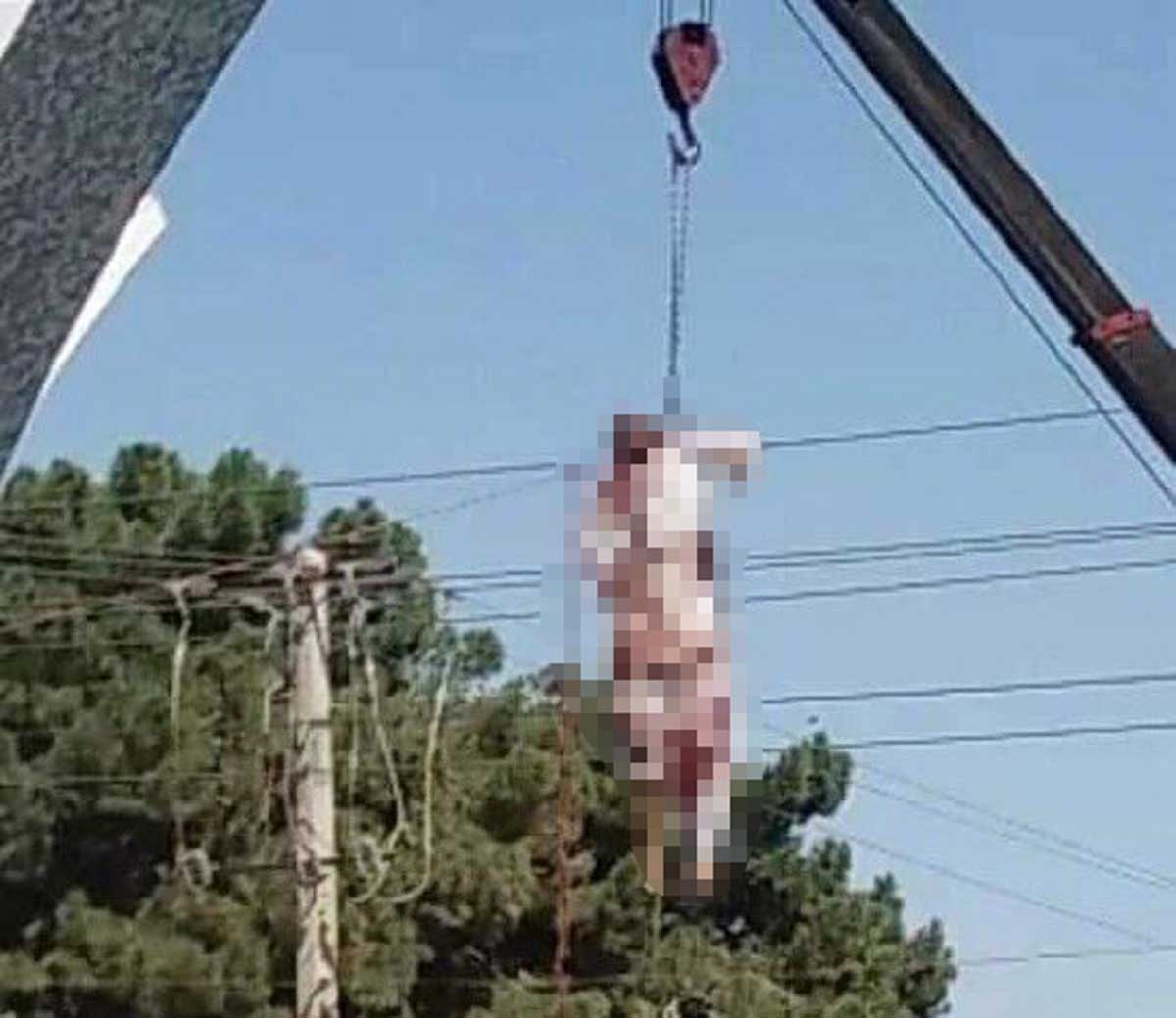 Sui social circolano immagini di uno di loro appeso a testa in giù a una gru nel mezzo di una rotonda della città.