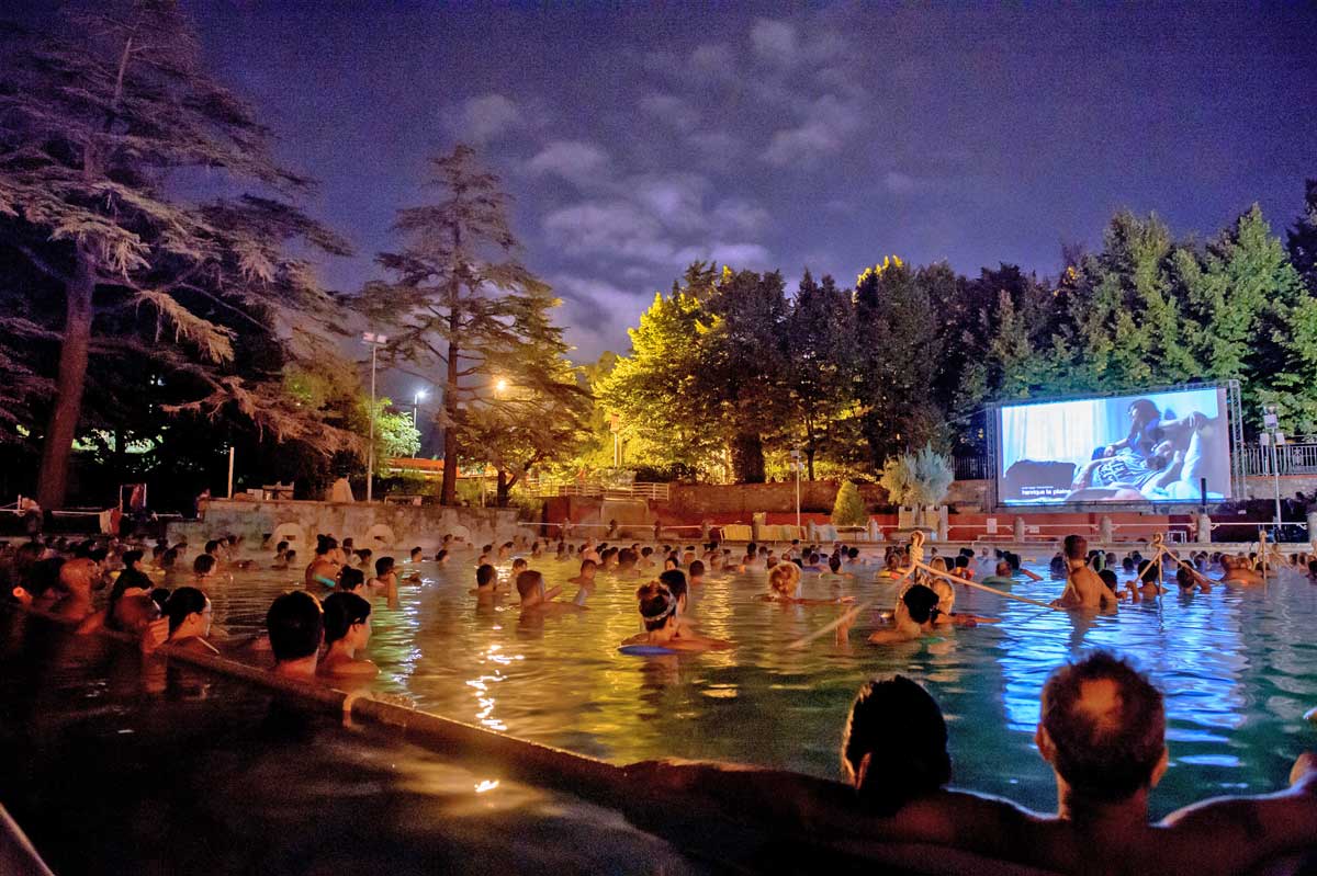 Una splendida serata del settembre viterbese dedicata al cinema ed al benessere, per nutrire corpo e spirito, questa la formula vincente di Cinema&Terme. Il format ormai consolidato prevede l’ingresso alla piscina monumentale delle Terme dei Papi, un primo accompagnamento musicale curato da JazzUp Festival con il Sax del Maestro Marcello Balena, la proiezione di un film, preceduta dall’incontro con un ospite legato alla pellicola, curato dalla direzione di Est Film Festival e Civita Cinema, il tutto mentre si viene cullati dalle calde acque termali. Un evento davvero esclusivo, in grado di unire cultura e benessere fisico in un momento in cui forse nulla è diventato più importante.