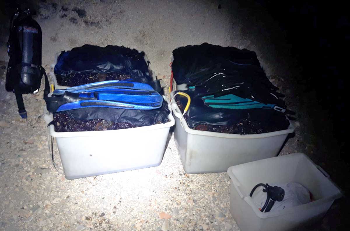 Civitavecchia - I ricci di mare e l'attrezzatura subacquea sequestrata