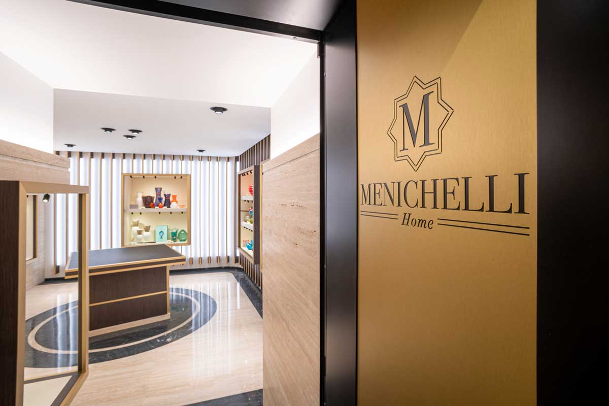 Il nuovo layout si estende su 260 mq di esposizione e ha come particolarità corner dedicati ai brand più prestigiosi come Rolex, Omega, Pomellato, Tudor, ma la vera novità è la nascita del reparto casa: Menichelli Home che ospita i migliori designer da Venini a Christofle.