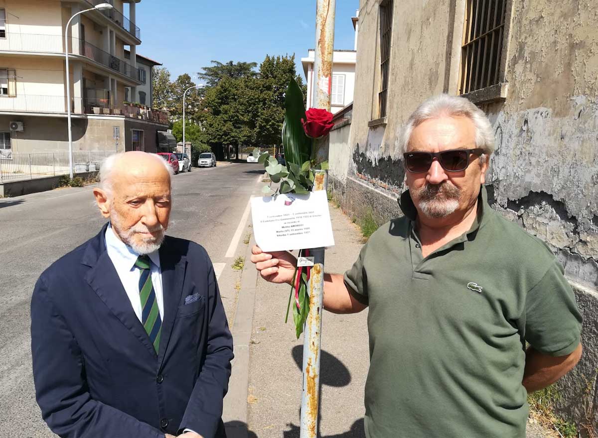 Una delegazione del Comitato Pro Centenario di Viterbo, guidata dal senatore Ferdinando Signorelli e da Gennaro Ramacciani, ha deposto un omaggio floreale in via del Paradiso, dove l’Amorosi venne picchiato e accoltellato dagli Arditi del Popolo, e sulla tomba del martire.