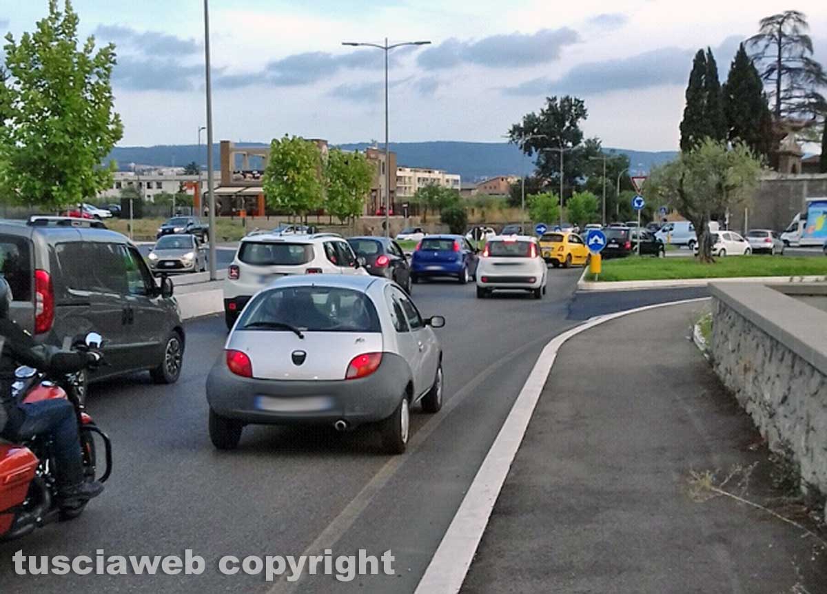 Vorrei inoltre portare all’attenzione anche la pericolosa situazione che si crea per coloro che vengono in auto dalla Cassia Nord verso la città nel punto in cui, all’altezza del cimitero proprio davanti ad Eurospin, da poco tempo, è stata fatta, (ahimè, anche qui) una rotatoria per smistare il traffico e che invece diciamo, purtroppo, crea ingorghi pericolosi nel passaggio da due ad una sola corsia che sbocca come ad imbuto proprio nella suddetta rotatoria.