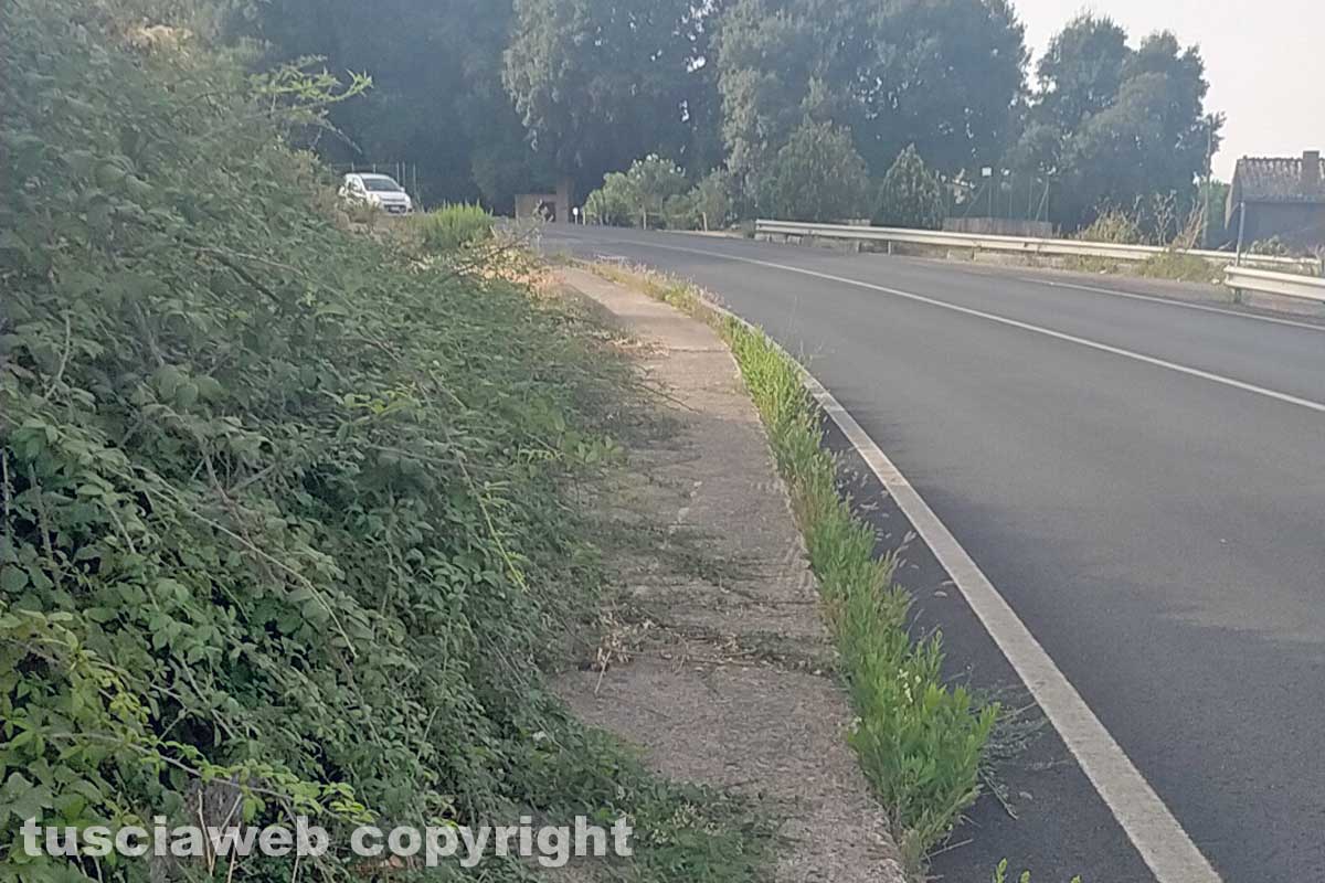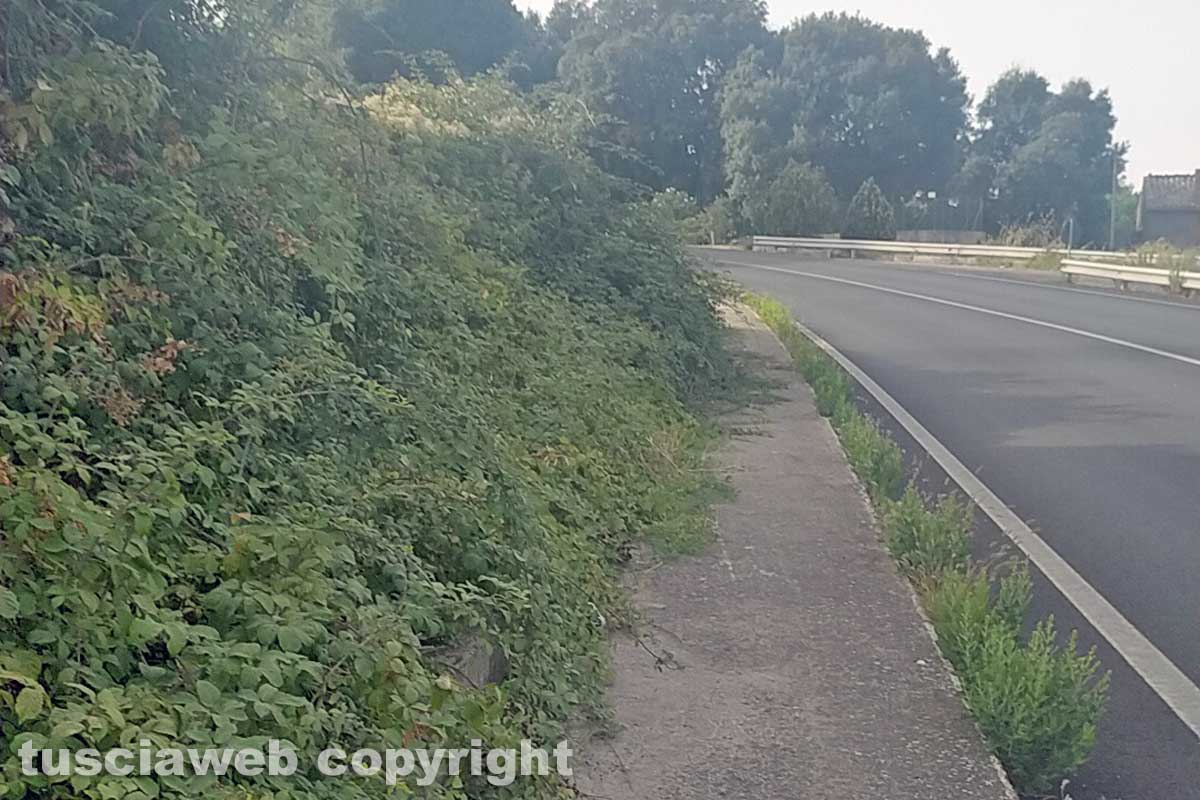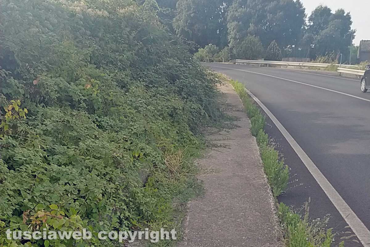 Viterbo – Riceviamo e pubblichiamo – Voglio far presente lo stato di degrado cui versano i marciapiedi sulla strada Sammartinese a ridosso dell’ospedale Belcolle a Viterbo, pieno di erbacce e rovi che costringono i pedoni a transitare sulla strada.