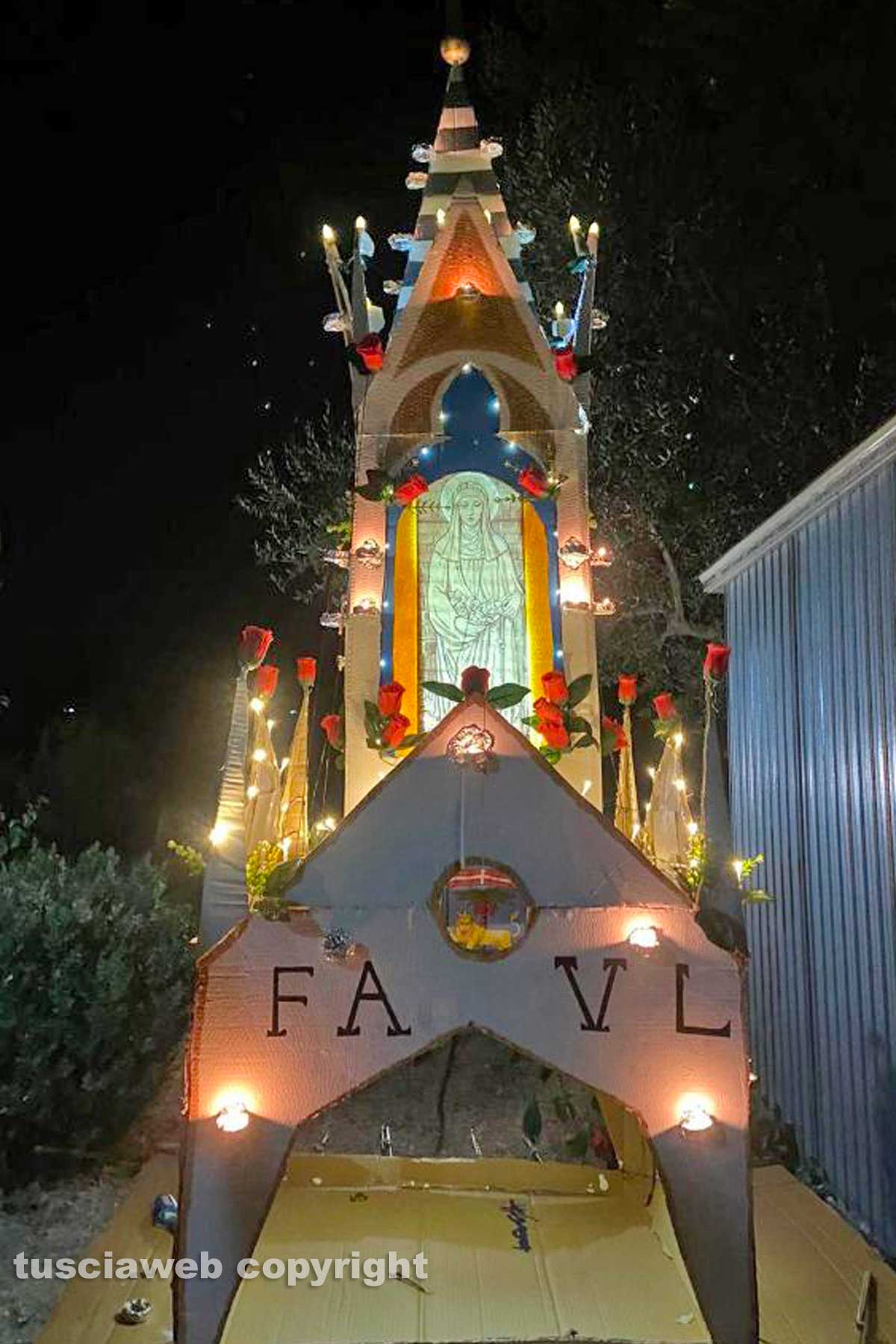 | Viterbo – Riceviamo e pubblichiamo – Ancora una volta a causa del Covid, il trasporto della macchina di Santa Rosa non si farà. Per questo motivo noi ragazzi quest’anno abbiamo deciso di fare una macchinetta nostra, progettata, costruita e trasportata direttamente e solo da noi. Una cosa un po’ personale insomma, un’idea venuta dalla mente e messa in pratica con il cuore, con la fede nei confronti della Santa, e con la voglia di continuare una tradizione che da secoli appartiene a noi viterbesi. In una settimana abbiamo creato questa macchinetta in cartone per poi decidere di trasportarla in una sera tra quelle dedicate alla Santa. Vorrei ringraziare inoltre, tutti coloro che oltre a me ci hanno aiutato a realizzare il tutto, tra cui Michela Buzzi, Giulia Montemari, Paola Iavarone e Chiara Iavarone. Con giorni di sacrifici e costi, siamo riusciti a festeggiare nel nostro piccolo la Santa Patrona, e in questi casi non mi resta da dire: “Evviva Santa Rosa”. Lorenzo Capalti, Paola Iavarone, Giulia Montemari, Chiara Iavarone, Michela Buzzi, Gerhard Valenti, Sofia Capalti, Giorgia Montini, Ludovica Tolino. Lorenzo Capalti |