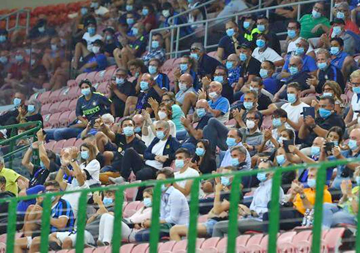Tifosi allo stadio con la mascherina