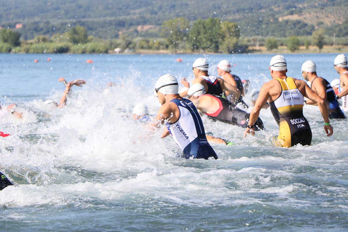 La location situata in località Borghetto, è stata perfetta per il rispetto delle normative anti Covid, essendo situata a 5 chilometri dal paese e limitando la presenza di pubblico come da protocollo, per quanto apprezzata moltissimo dagli atleti. La gara valida per il rank nazionale e si è disputata sulla distanza Sprint. Gli atleti partecipanti erano 130 e alle 10 veniva data la partenza formata da tre batterie distanziate un minuto l’una dall’altra. Già nella frazione natatoria di 750 metri prendevano il largo due atleti, Edoardo Petroni e Matteo Perri che uscivano appaiati dall’acqua. Nella frazione in bici svolta su un percorso di 19,600 chilometri, Petroni si involava in una fuga solitaria, su un percorso impegnativo con la salita di via del Lago da ripetere due volte, arrivando così in zona cambio con più di un minuto di vantaggio.