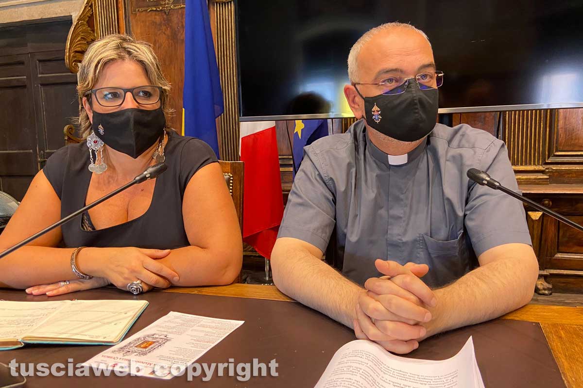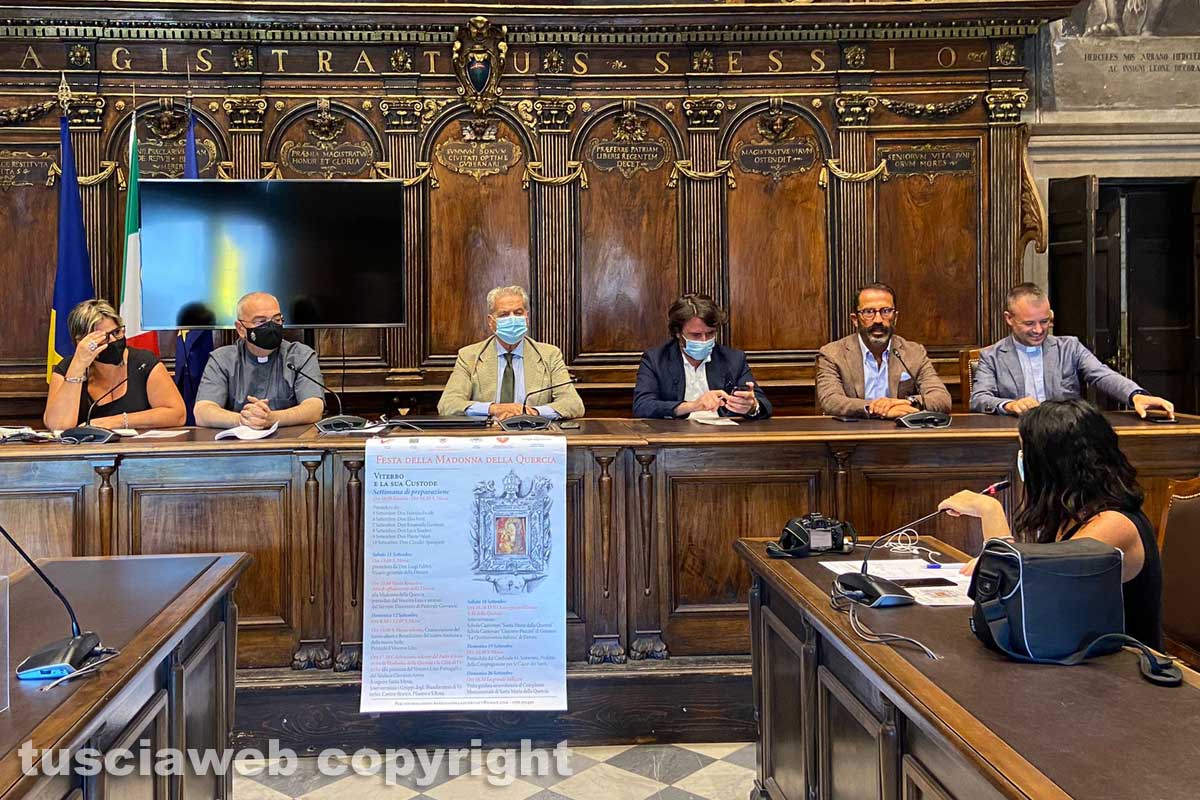 Assieme a don Massimiliano, rettore della Quercia, in conferenza nella sala del consiglio comunale di Viterbo a palazzo dei Priori, ci sono anche il sindaco Giovanni Arena, l’assessore alla cultura e al turismo, Marco De Carolis, il protravo e del vescovo Lino Fumagalli, don Emanuele Germani, la responsabile degli eventi della basilica della Quercia e presidente della Pro loco, Irene Temperini, e il presidente di Confartigianato, Andrea De Simone.