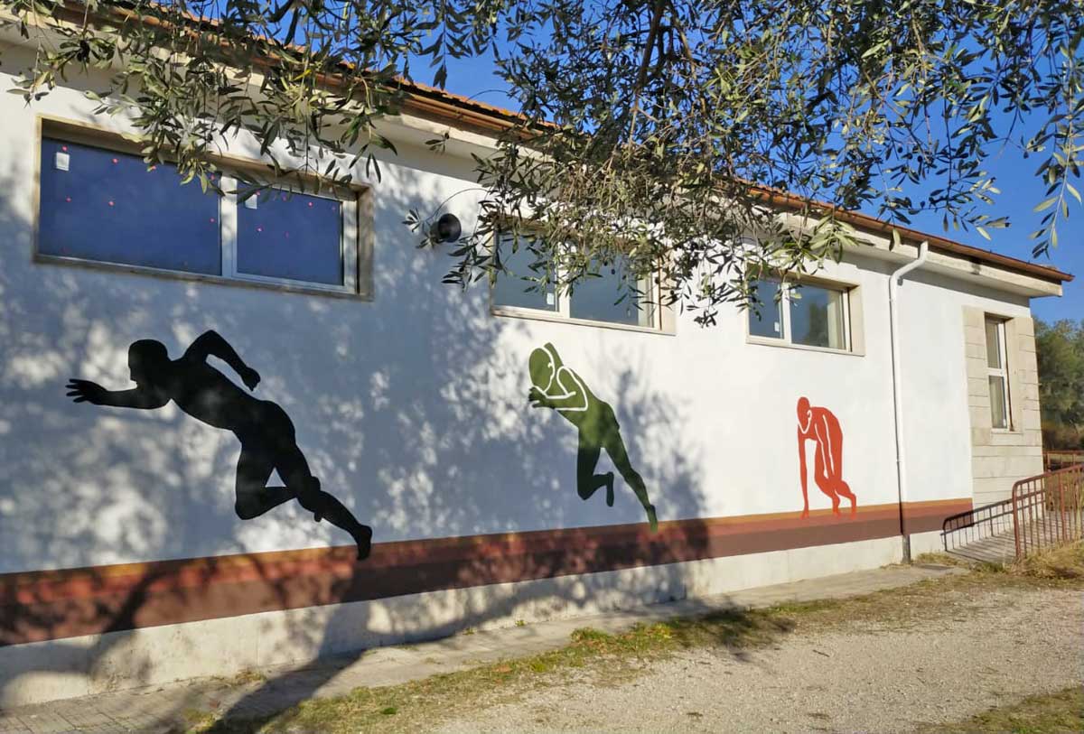 Campo sportivo scolastico – Il murales sulla parete degli spogliatoi