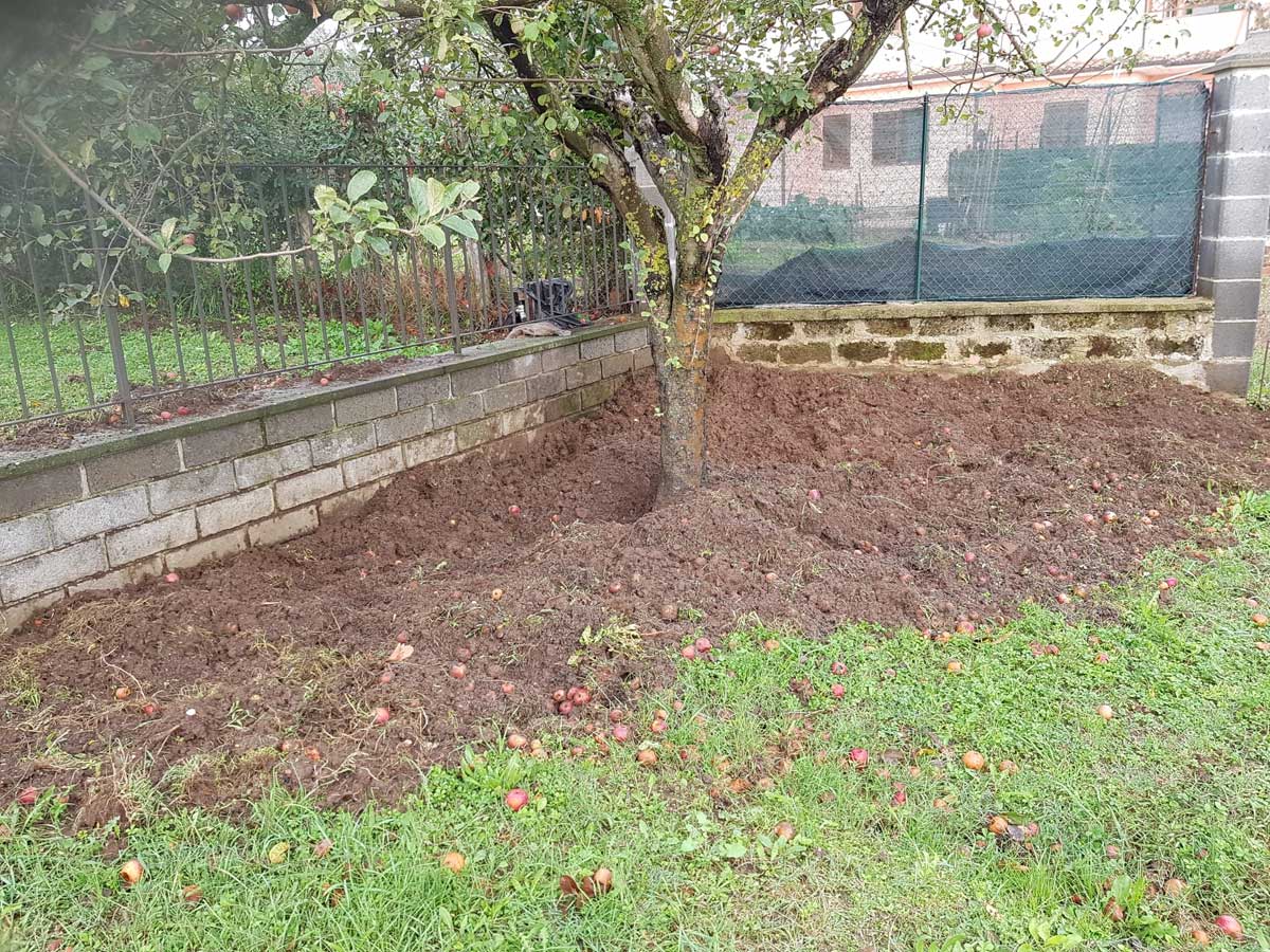 Spinto dalle luci e dal silenzio della notte, un branco di cinghiali si è avvicinato ai giardini e ha rovistato con forza nel terreno alla ricerca di cibo, danneggiando in maniera importante il manto erboso. Non solo. Il branco si è poi accanito contro un melo e ha fatto cadere quasi tutti i frutti. L’area vicino l’albero è stata calpestata e scavata dai cinghiali, tanto che non è più rimasto nemmeno un filo d’erba.