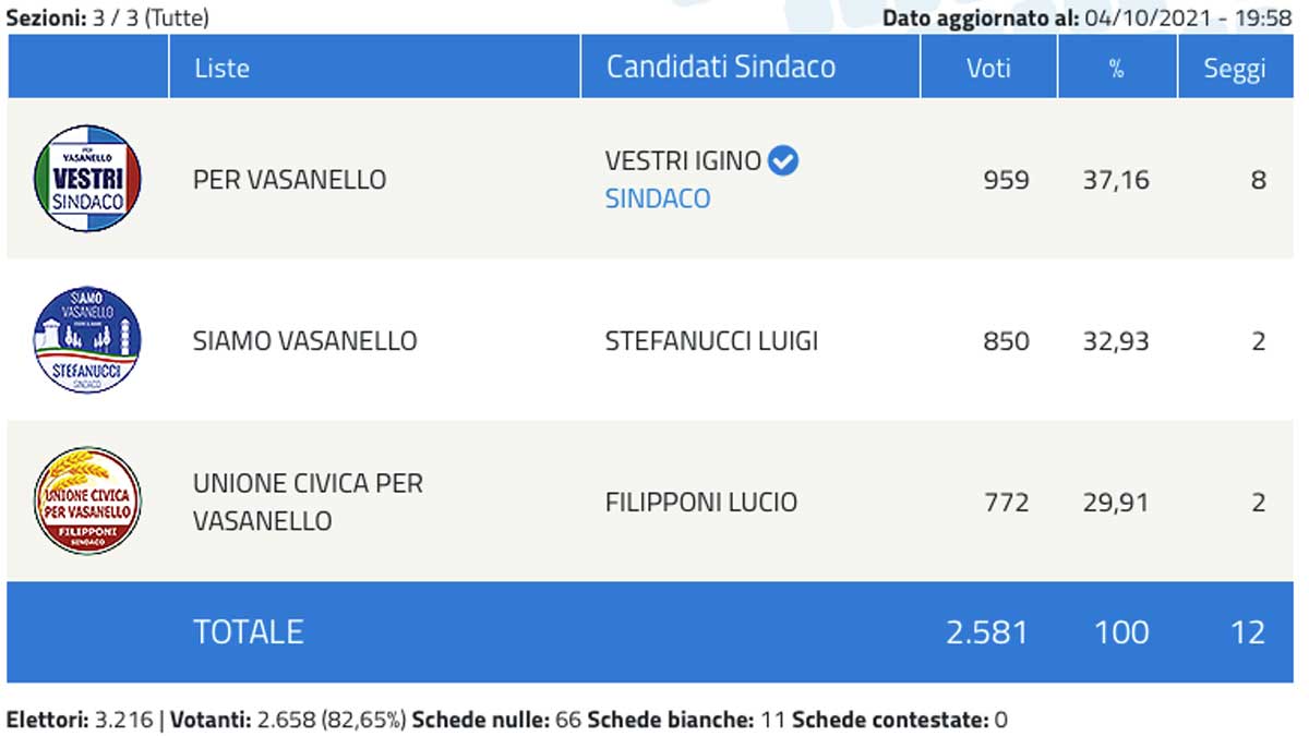 - "Complimenti a Igino Vestri, sarà il sindaco di tutti i vasanellesi"