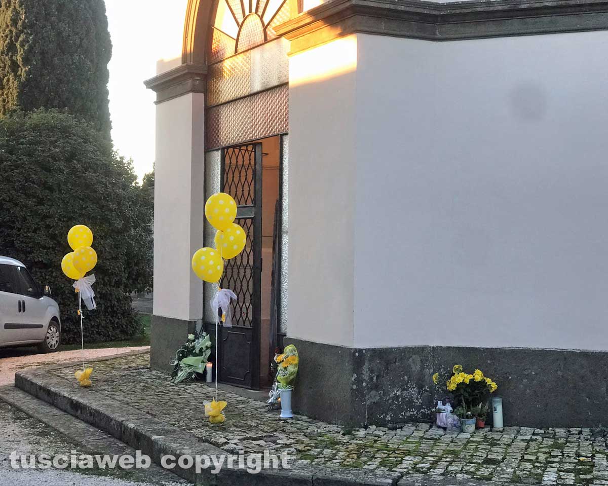 Vetralla – Fiori bianchi e palloncini gialli per il piccolo Matias. Aperta la camera ardente al cimitero di Vetralla per rendere omaggio al bambino di 10 anni trovato morto in casa con un coltello al collo.