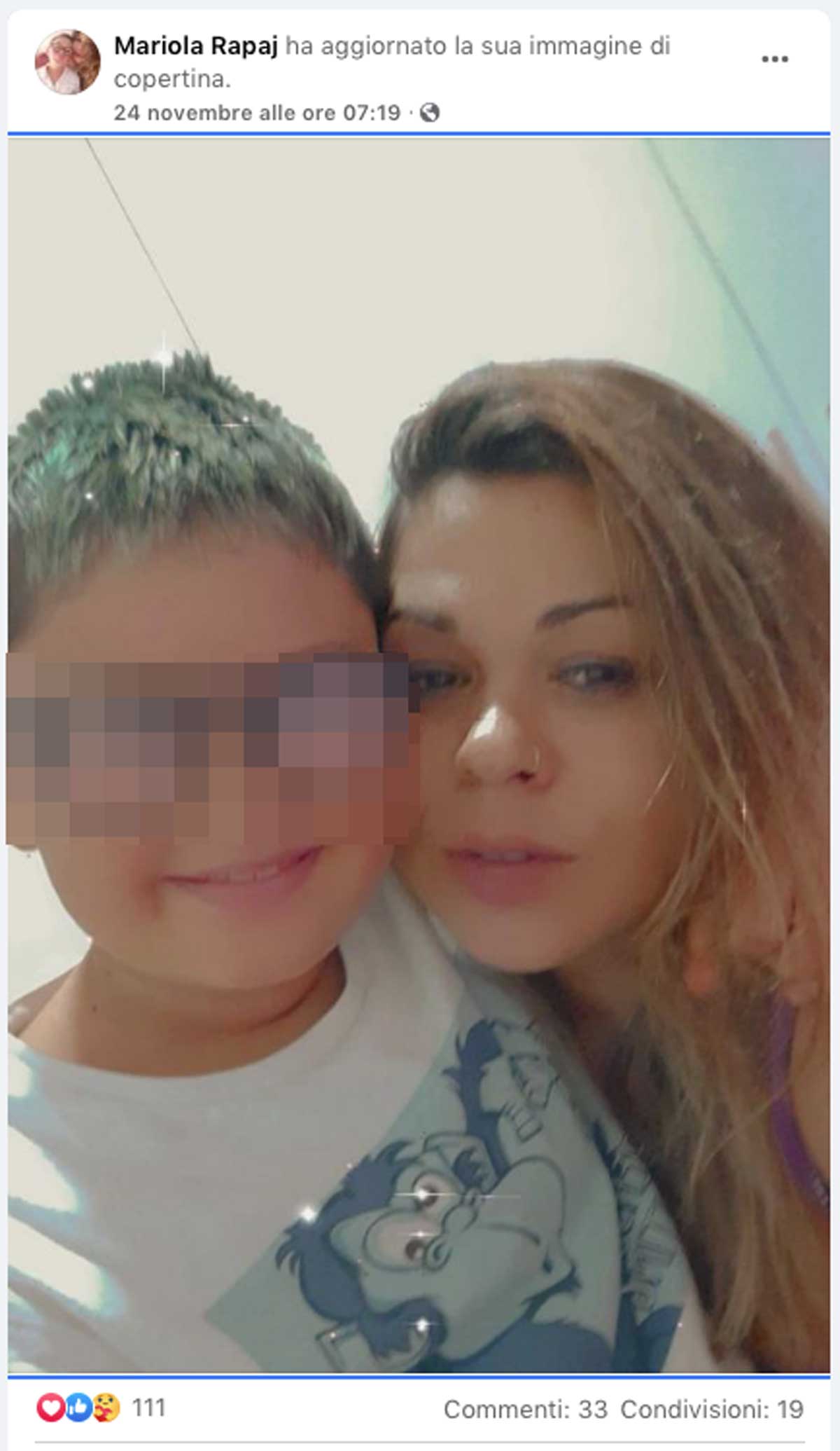 Il post su Facebook di Mariola Rapaj con il figlio Matias