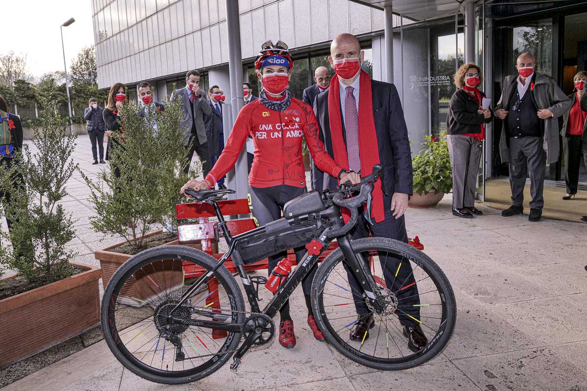 Orietta Casolin è stata accolta da una rappresentanza molto significativa di imprenditrici ed imprenditori di Roma e del Lazio, oltre che dal Presidente Angelo Camilli, che ha convocato proprio oggi il Consiglio Generale di Unindustria, in vista della tappa finale di questa iniziativa. A fare da cornice all’arrivo della ciclista un’Unindustria tinta di rosso, con panchine e scarpe rosse, colore simbolo della lotta contro la violenza sulle donne: per mantenere vivo il ricordo delle vittime di femminicidio.