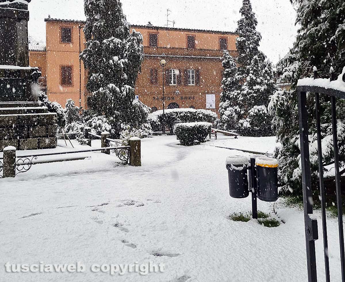 La neve è scesa abbondante in particolare ad Acquapendente, ma anche a San Lorenzo Nuovo, Montefiascone e i comuni vicini, costretti a prendere provvedimenti.