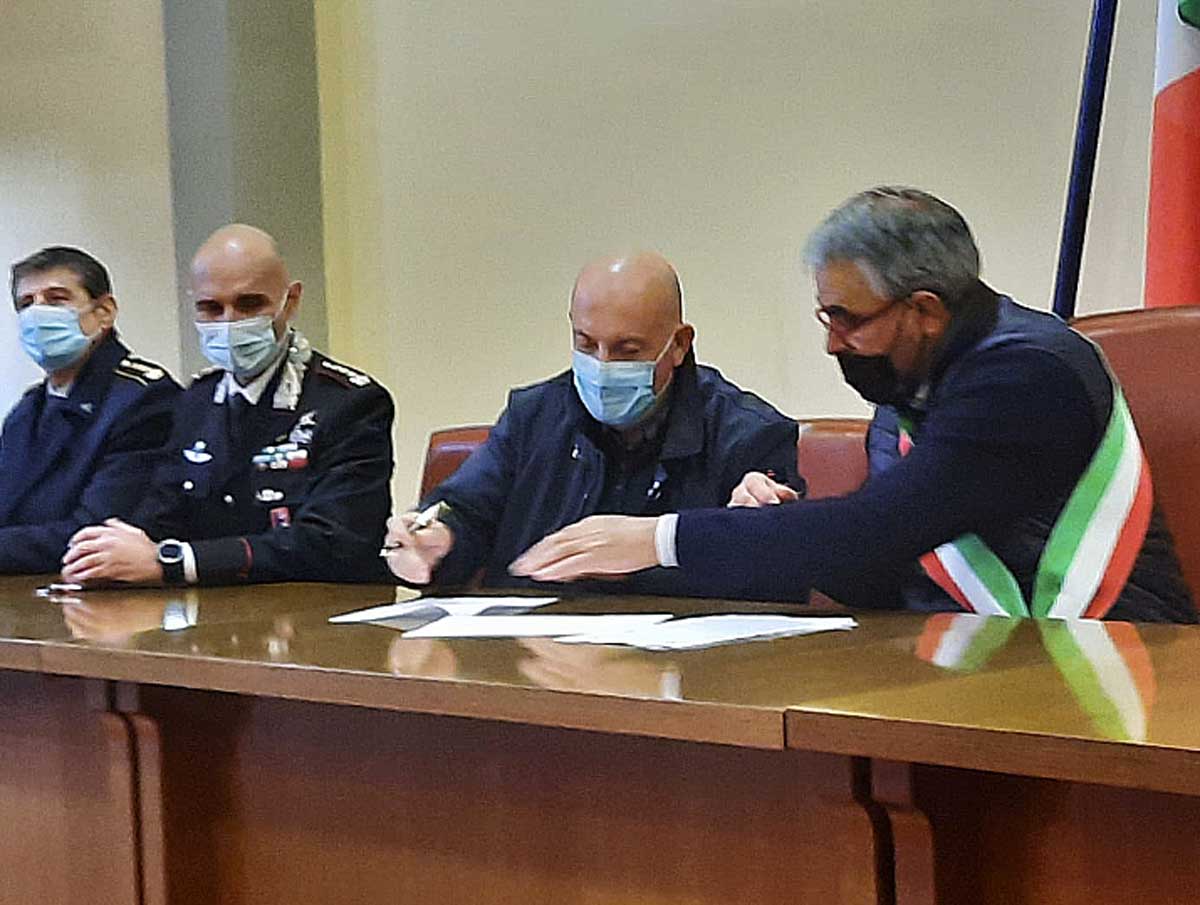 Corchiano – Riceviamo e pubblichiamo – Il prefetto di Viterbo Giovanni Bruno e il sindaco di Corchiano Gianfranco Piergentili hanno firmato un protocollo d’intesa, il Patto per la Legalità, con l’obiettivo di sviluppare, in sinergia con tutte le componenti dello stato presenti sul territorio, il contrasto alla criminalità e all’illegalità, per garantire una più ampia sicurezza e una migliore qualità della vita alla nostra comunità, anche attraverso l’installazione di un ampio sistema di video sorveglianza diffuso sul territorio.