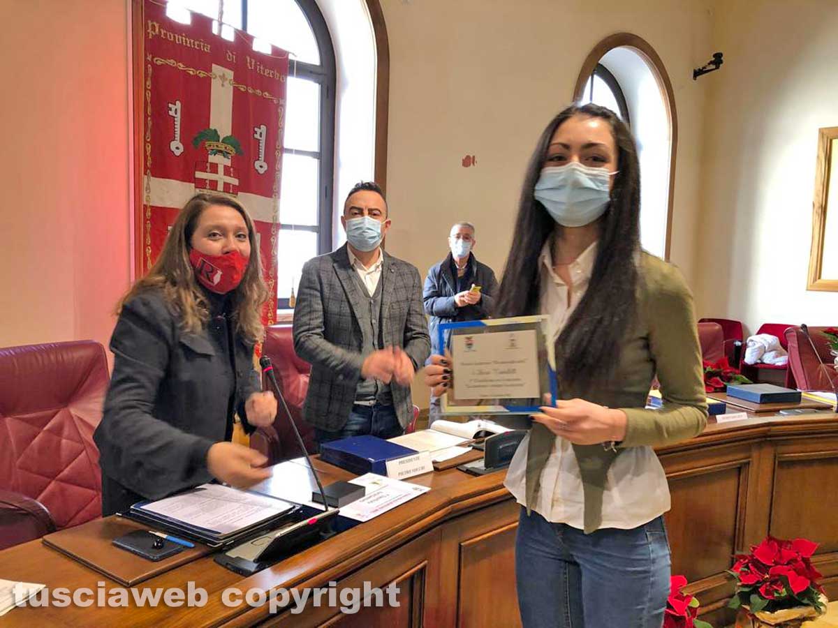 Menzioni d’onore anche ad Arianna D’Angelo (Sutri), Chiara D’Angelo (Sutri), Giorgia Dolce (Montalto di Castro), Giulia Giorgini (Tarquinia), Leonardo Pelliccia (Ronciglione).