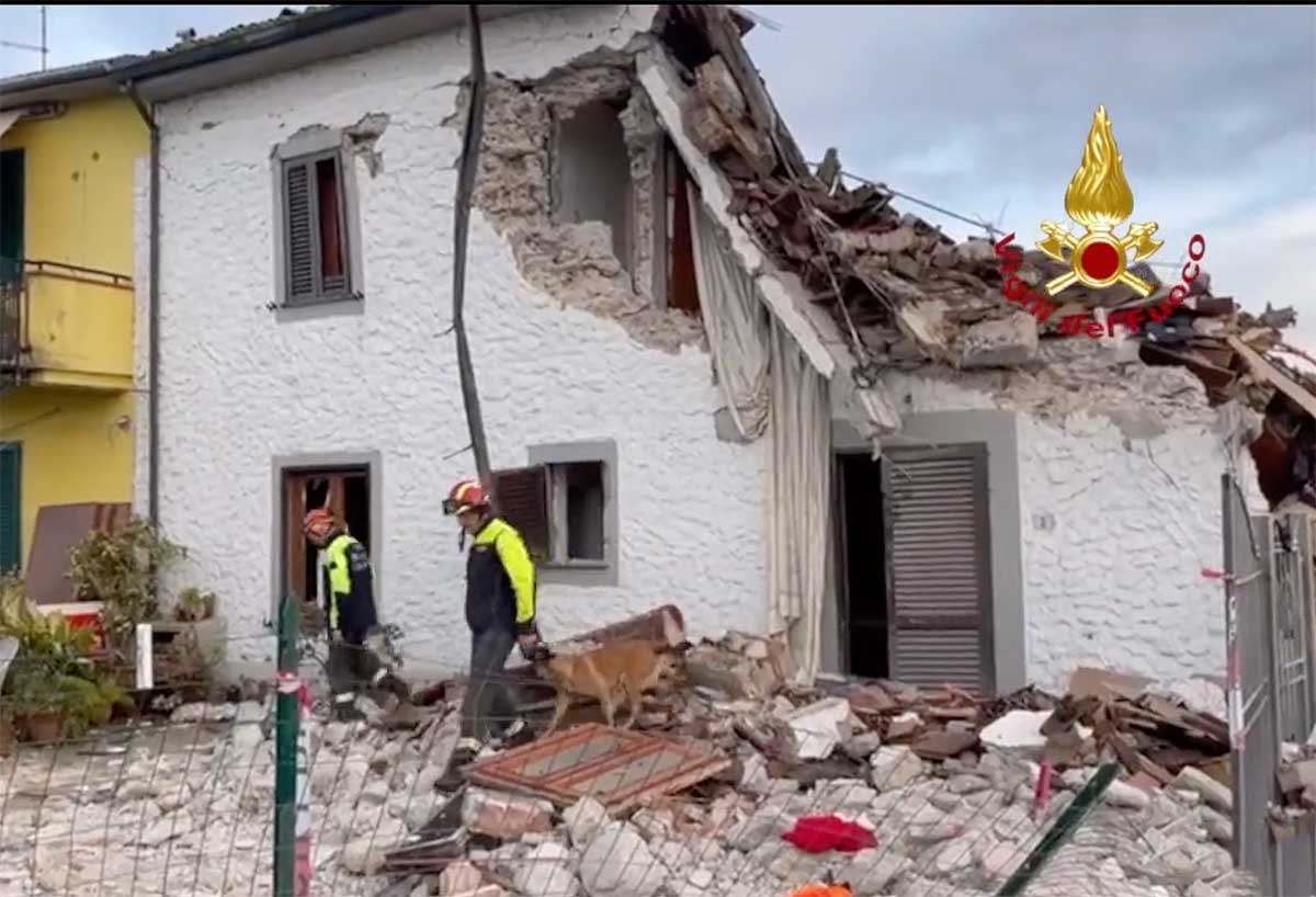 Leggermente feriti i residenti, che già erano in strada, mentre sono entrati in azione anche i cinofili per escludere la presenza di persone rimaste bloccate.