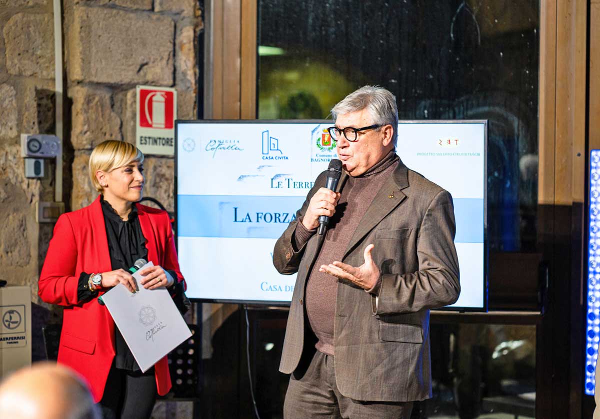 Il sindaco di Bagnoregio ha dato inizio al convegno, durante il quale sono intervenuti per le istituzioni Francesco Bigiotti (Amministratore Unico di Casa Civita) e Mauro Belli (Set Progetto Sviluppo Etruria Tuscia), mentre collegato on line c’era Antonio Barreca (Direttore Generale Federturismo).