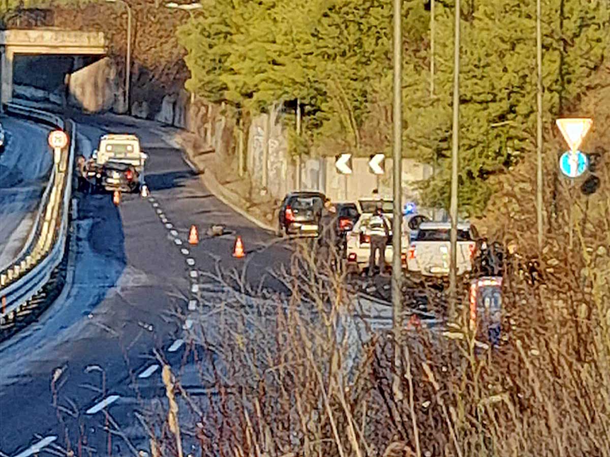 Un maxitamponamento ha coinvolto quattro veicoli, nel tratto a scendere da zona Ellera. Un altro sinistro ha invece interessato due auto. Non ci sarebbero feriti.