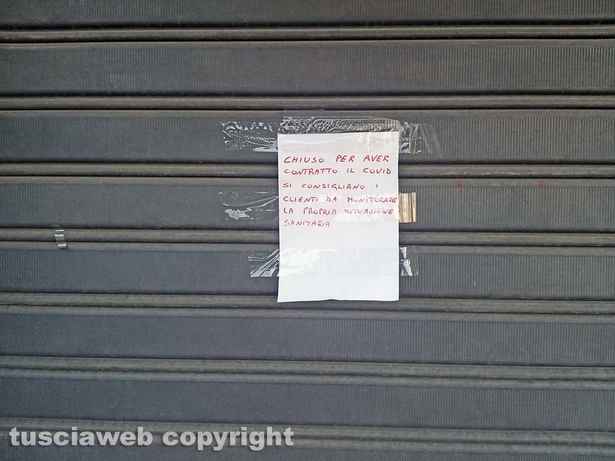 Nella saracinesca abbassata dell’attività è stato affisso un cartello: “Chiuso per aver contratto il Covid. Si consigliano i clienti di monitorare la propria situazione sanitaria”.