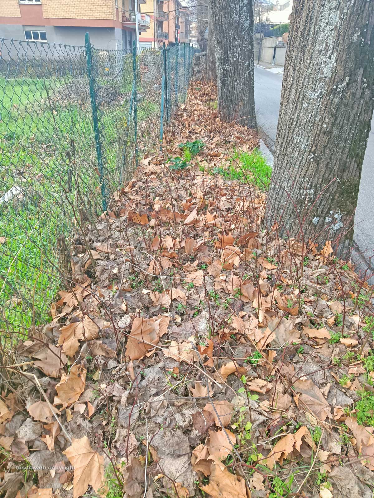 Viterbo – Riceviamo e pubblichiamo – Il tratto del marciapiede sinistro, scendendo dalla strada Roncone, di via Santa Maria della Grotticella, appena superata la chiesa, risulta impraticabile: sono anni che una coltre di sterpaglie ricopre il marciapiede, costringendo i pedoni ad attraversare la strada per raggiungere il marciapiede opposto, oppure a camminare in mezzo alla strada rischiando di essere investiti, dato il considerevole transito di veicoli e la modesta larghezza della carreggiata. Francesco Polo |
