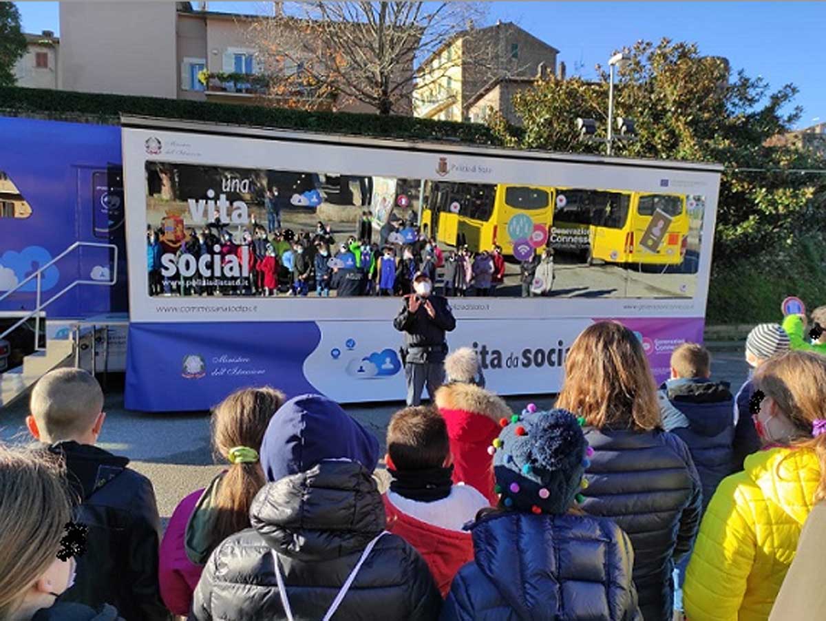 Vetralla – Riceviamo e pubblichiamo – Ieri il truck della Polizia di Stato si è fermato a Vetralla, in piazza San Marco, per la seconda tappa in provincia della campagna educativa itinerante “Una Vita da Social”, che ha visto la partecipazione di otto classi della scuola primaria dell’Istituto Comprensivo Statale “Andrea Scriattoli”.