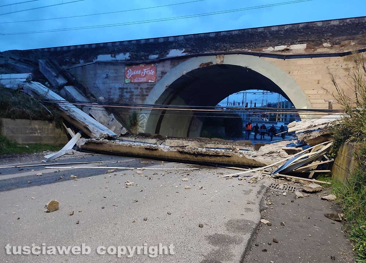 Crolla parte del ponte ferroviario